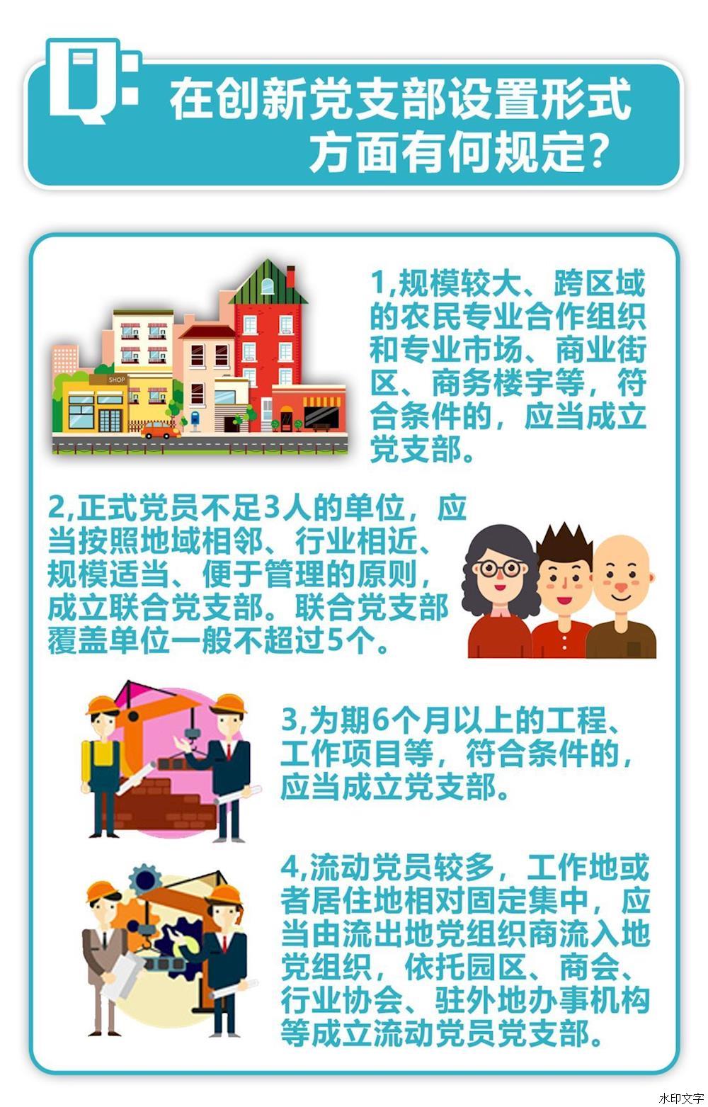 規(guī)模較大、跨區(qū)域的農(nóng)民專業(yè)合作組織,專業(yè)市場、商業(yè)街區(qū)、商務樓宇等,符合條件的,應當成立黨支部。