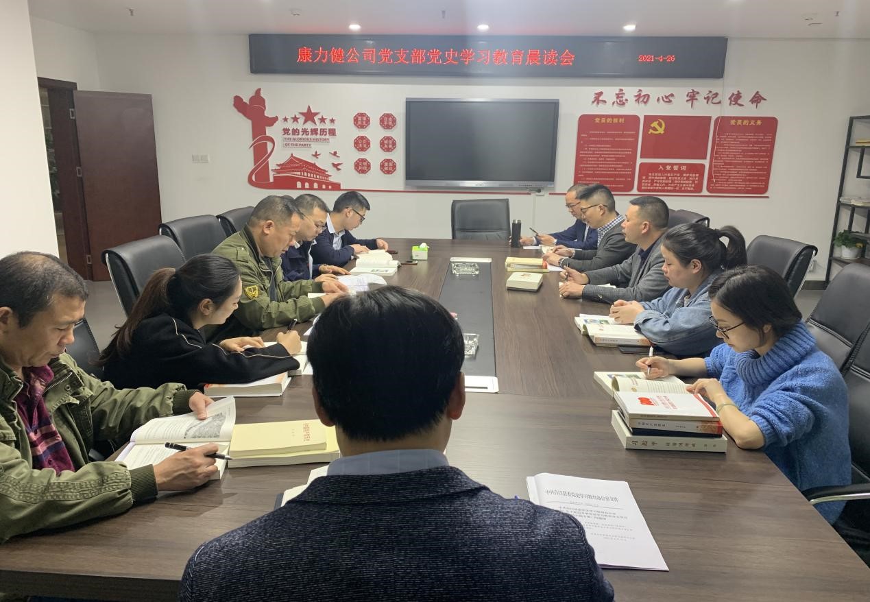 2021年4月26日上午,康力健黨支部組織開展了黨史教育學習晨讀會,支部全體黨員、預備黨員參加了會議,晨讀會由黨支部書記鄭世來主持。