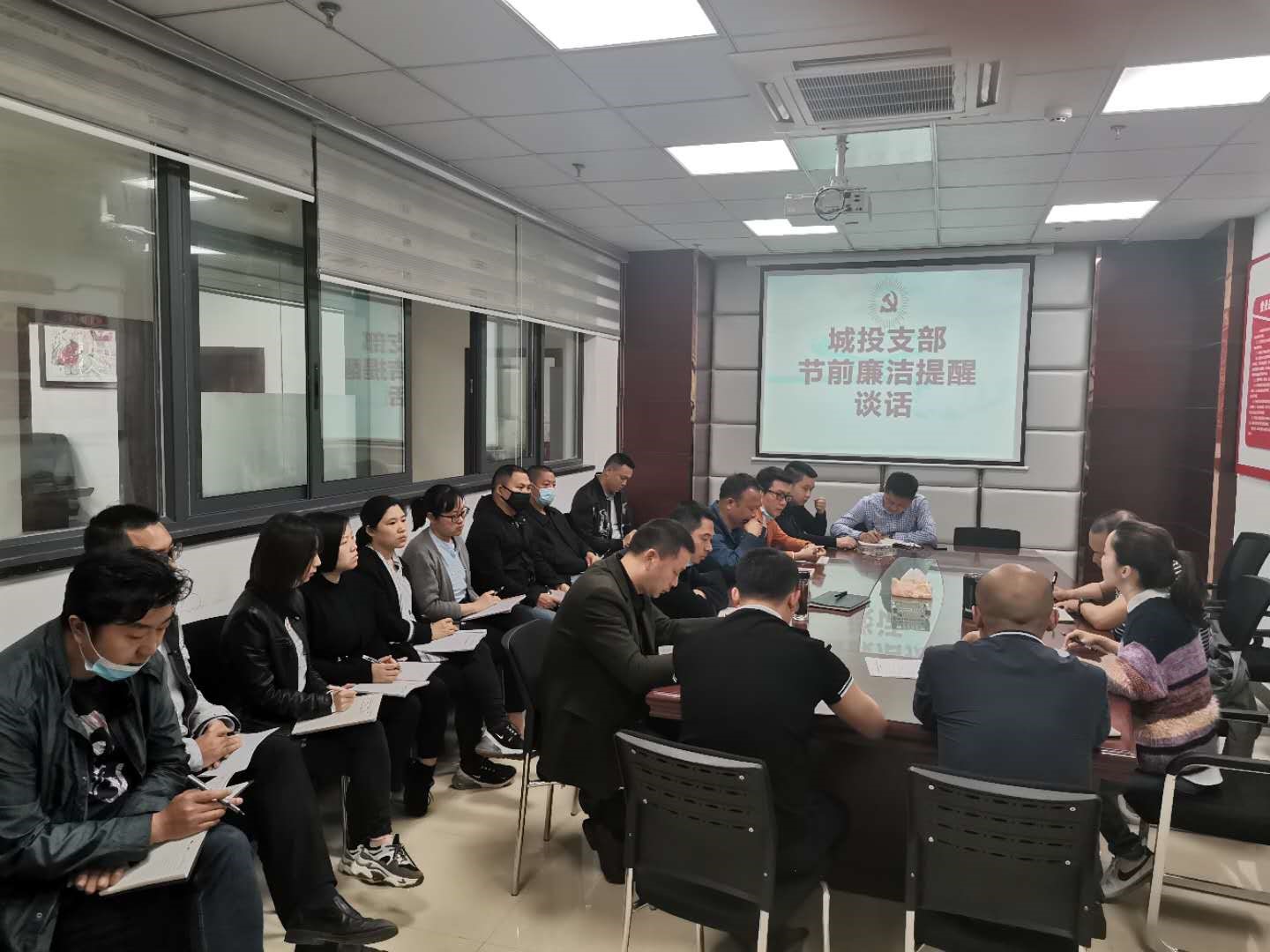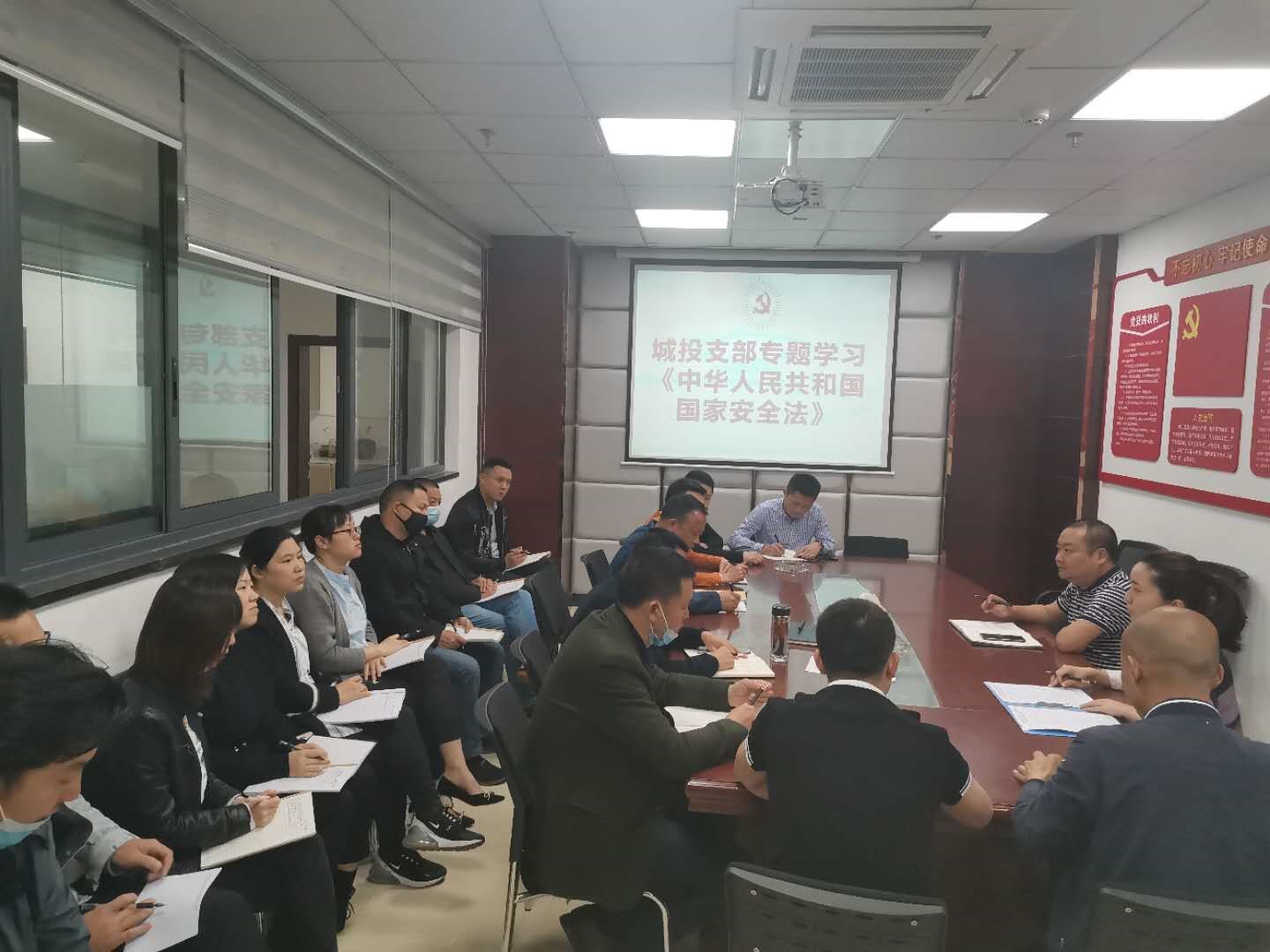 2020年4月27日上午,城投支部副書(shū)記譙棣升召集全體黨員、入黨積極分子開(kāi)展《中華人民共和國(guó)國(guó)家安全法》專題學(xué)習(xí)暨節(jié)前廉潔提醒談話。會(huì)上,譙棣升從嚴(yán)于律己、以身作則、管好親屬等方面要求全體同志繼續(xù)樹(shù)立廉潔自律好風(fēng)氣,爭(zhēng)做模范黨員好先鋒。