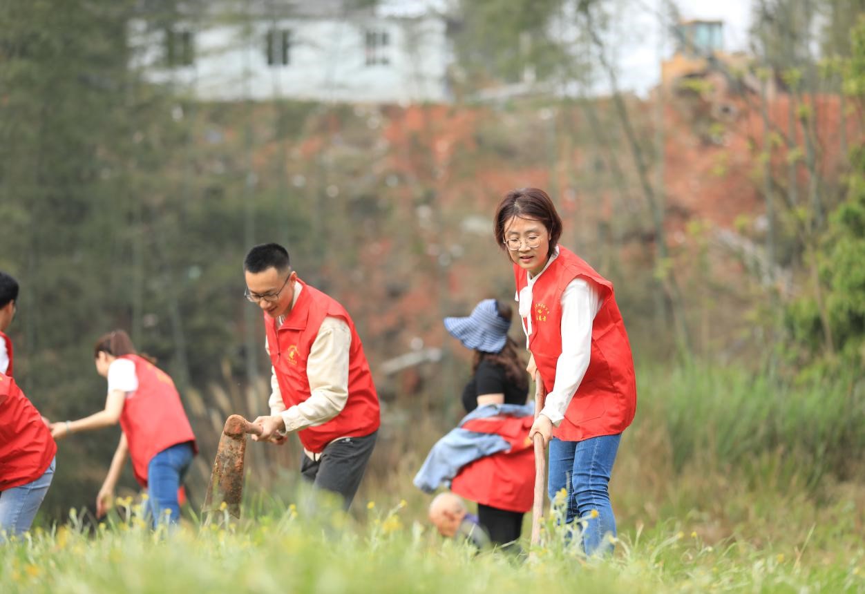 在播種現(xiàn)場,公司總經(jīng)理吳平對任務(wù)進(jìn)行了分工,大家迅速行動、相互協(xié)作,清理雜草、揮鍬鏟土、播撒花籽……到處都是忙碌的身影?;顒舆M(jìn)行了近三個小時,讓原本雜亂的荒地?zé)ㄈ灰恍?。大家望著眼前這片將要綻放新生命的土地,感到無比充實與快樂。