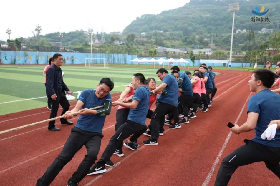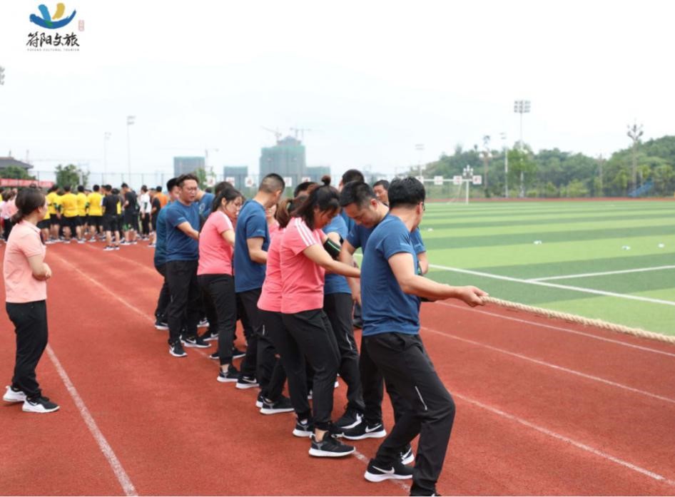 隨著哨聲一響,我們雙手握緊長繩,咬緊牙關(guān)向后拉,為了把握節(jié)奏形成合力,心里默念著“一二、一二”,場上一時僵持難下,但難敵強悍對手,第一局廣源達勝。這仿佛符合多數(shù)人的預(yù)期,但我們怎會被拘于這固定印象,越戰(zhàn)越勇才是符陽文旅人的風姿。第二場對決比第一場更加艱難,一開場廣源達占據(jù)絕對優(yōu)勢,我們險被拉到了終線,全憑一口氣死撐,牙關(guān)咬緊,身體后傾,不斷降低重心,腳步穩(wěn)扎,做著別人眼里無畏的掙扎。一定不能越線!在超高壓下堅持了十余秒,那一刻拼的就是韌勁!一群瘦弱的文旅人憑著一股拼勁慢慢把賽場主動權(quán)掌握在了自己手中,每向后移動一步,心里的勁更足了,如荒漠迷路的旅者遇見了綠洲,我們也尋得了力量之源。當現(xiàn)場歡呼聲響起時,我們已癱坐一片,不敢置信,我們贏啦!