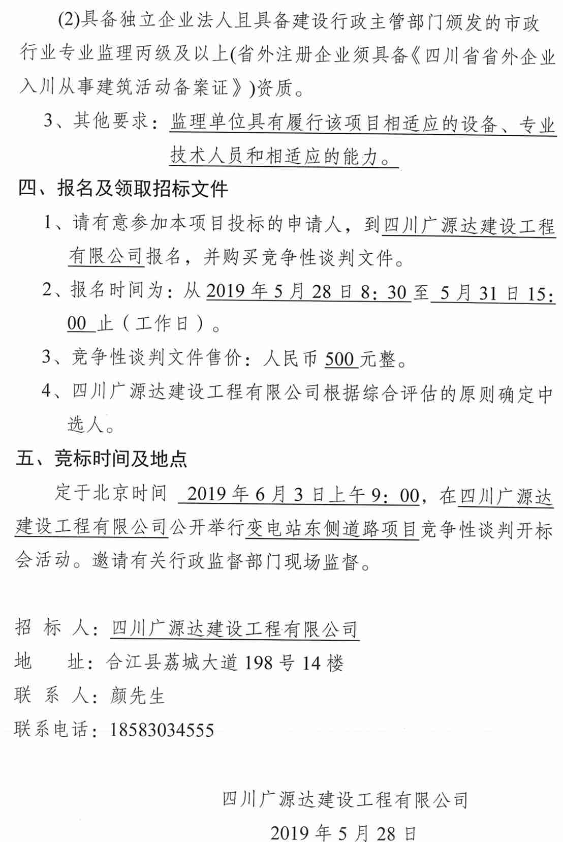 變電站東側(cè)道路項(xiàng)目(監(jiān)理)競(jìng)爭(zhēng)性談判公告
