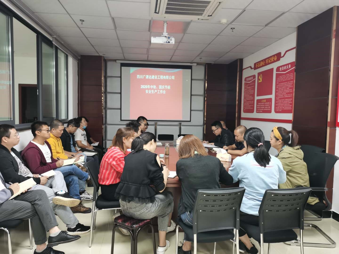 2020年9月25日,廣源達(dá)公司董事長譙棣升主持召開中秋國慶節(jié)前安全生產(chǎn)工作會(huì)暨《關(guān)于迅速集中整改國務(wù)院安委會(huì)考核巡查四川省2019年度安全生產(chǎn)和消防工作發(fā)現(xiàn)問題工作方案》的整改會(huì),公司全體人員及各在建項(xiàng)目項(xiàng)目經(jīng)理和安全負(fù)責(zé)人參會(huì)。