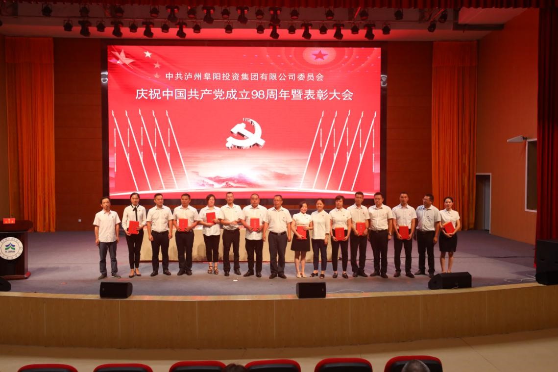 2019年7月1日下午,瀘州阜陽(yáng)投資集團(tuán)有限公司黨委在合江天立學(xué)校驕子演藝廳召開(kāi)“慶祝中國(guó)共產(chǎn)黨成立98周年表彰大會(huì)”,集團(tuán)黨委書記、董事長(zhǎng)游啟君主持會(huì)議。集團(tuán)全體黨員、預(yù)備黨員、發(fā)展對(duì)象、積極分子及下屬公司全體員工300余人參加會(huì)議。