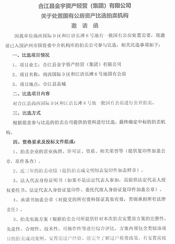 關于金宇公司處置國有公房資產比選拍賣機構的公告