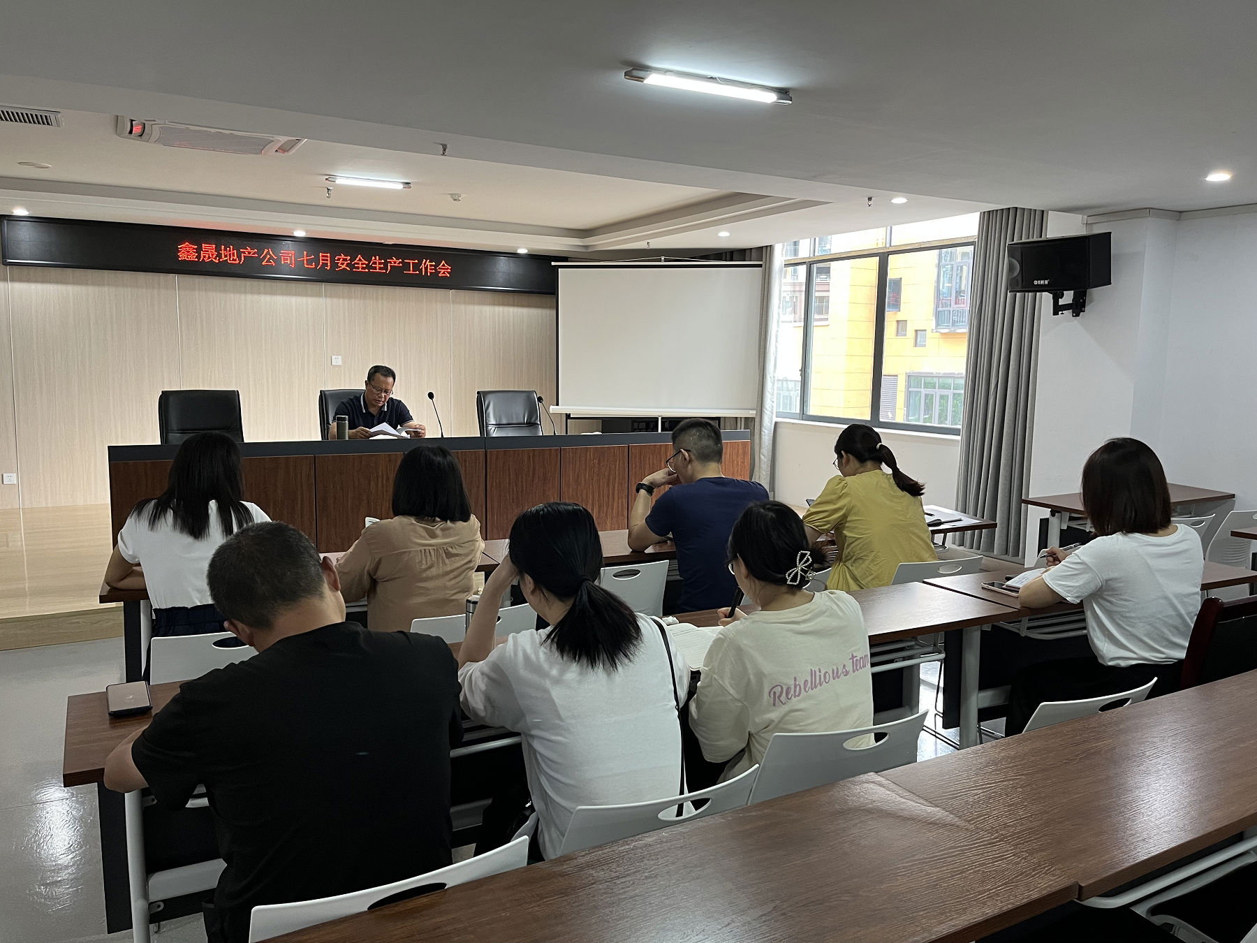 2022 年 8 月 4 日, 瀘州鑫晟房地產(chǎn)開發(fā)有限公司組織召開七月安全生產(chǎn)工作會(huì),會(huì)議由董事長任東財(cái)主持,公司全體員工參加。