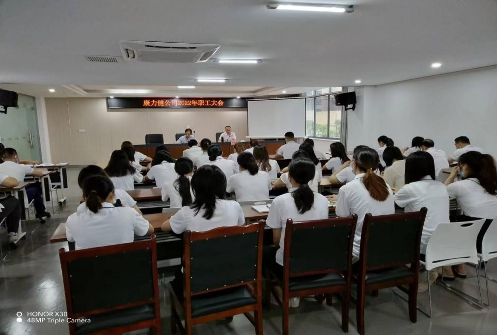 2022 年 6 月 27 日上午,瀘州康力健醫(yī)療投資有限公司 在 公 司 大 會(huì) 議 室 舉 行 2022 年 職 工 大 會(huì) 。 公 司 董 事 長(zhǎng) 胡 天 華 、 總經(jīng)理鄭世來出席了大會(huì), 并在大會(huì)上發(fā)表重要講話。 本次 大會(huì)分為上半年工作總結(jié)、 下半年工作計(jì)劃及安全生產(chǎn)會(huì)議 三個(gè)部分, 旨在總結(jié)公司上半年的發(fā)展情況, 完善下半年的 發(fā)展計(jì)劃及 “ 對(duì)標(biāo)找差、提能增效 ” 活動(dòng)開展情況,鄭世來總 經(jīng)理提出 : 一是要理清業(yè)務(wù)工作思路,對(duì)目標(biāo)任務(wù)高標(biāo)準(zhǔn)嚴(yán) 要求的貫徹執(zhí)行;二是要強(qiáng)化落實(shí) “ 兩個(gè)責(zé)任 ” ,抓好黨的建 設(shè)和企業(yè)管理。 將組織相關(guān)人員不定期對(duì)公司各崗位履職情 況進(jìn)行檢查監(jiān)督, 發(fā)現(xiàn)問題, 立即指出督促整改到位, 建立 健全各項(xiàng)規(guī)章制度, 以制度管人, 推動(dòng)公司各職能部門履職 盡責(zé), 提升公司盈利能力和盈利水平, 并對(duì)廉潔從業(yè)及安全 生產(chǎn)管理制度進(jìn)行了的宣講。
